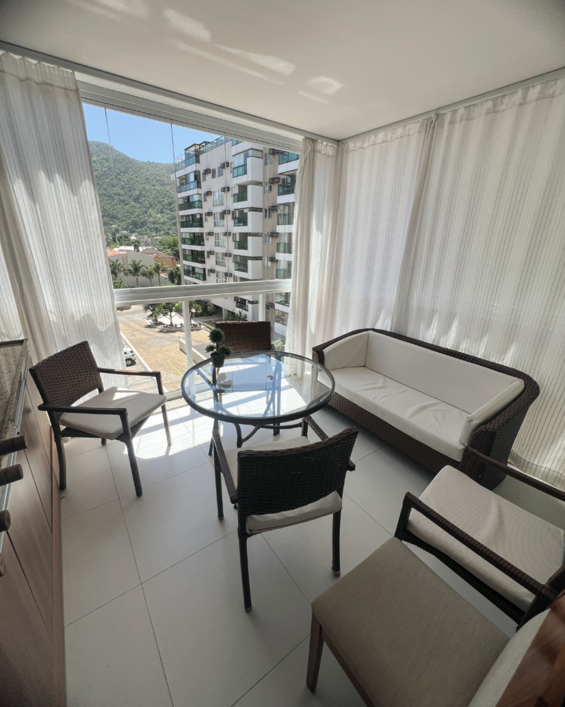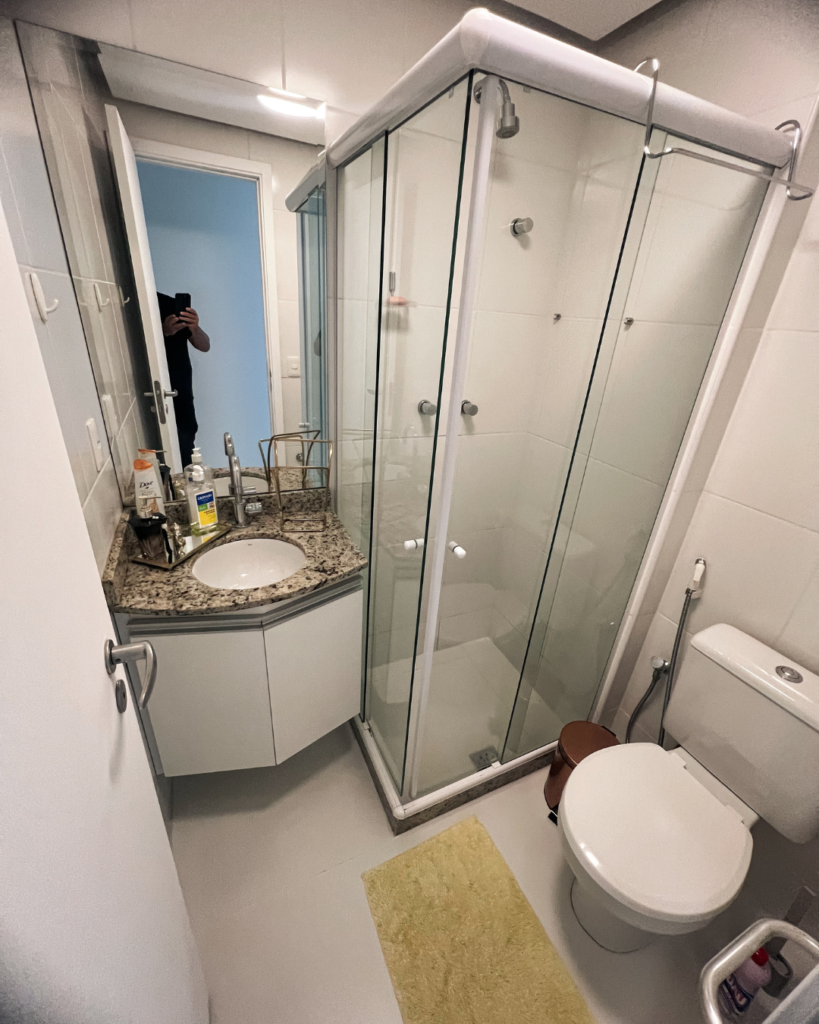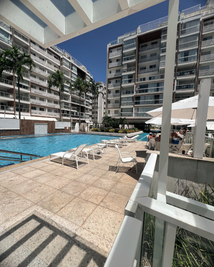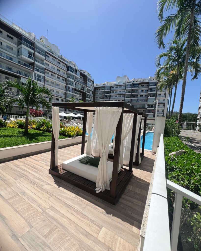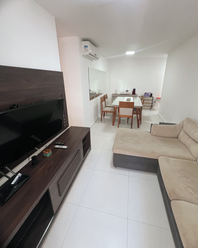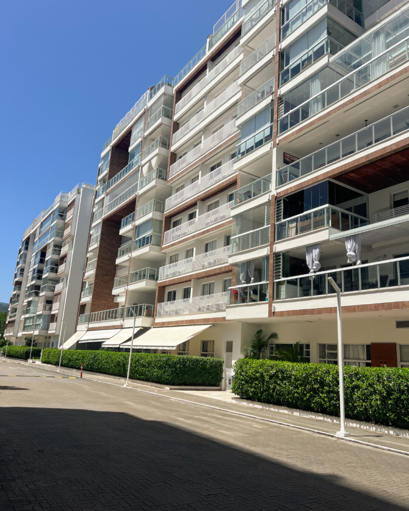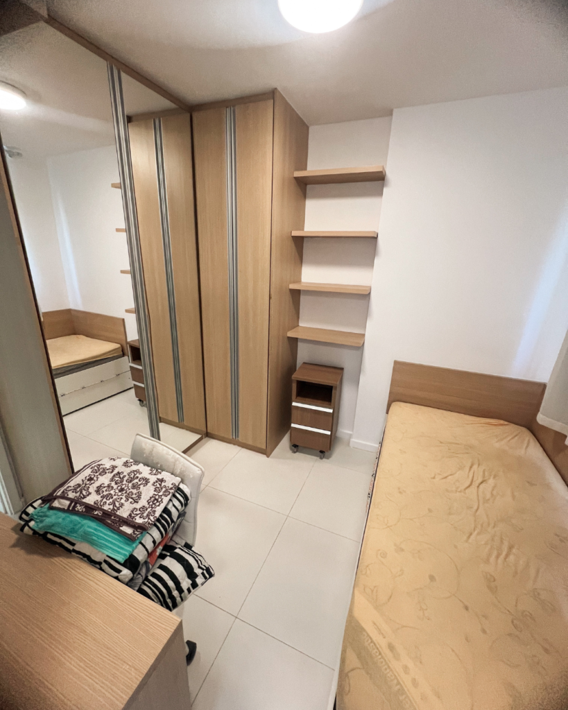O condomínio conta com piscinas, academia, salão de festas, segurança e portaria 24h, além de garagem coberta.