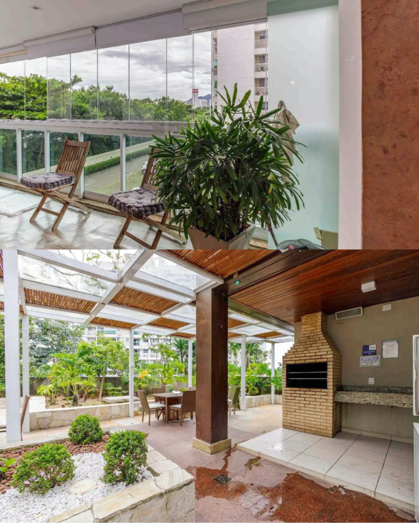 - Varanda com cortina de vidro e persianas