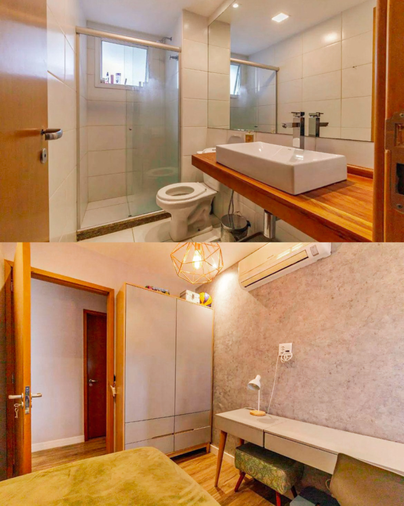 Composto por 3 quartos, sendo 1 suíte, além de lavabo e banheiro social.